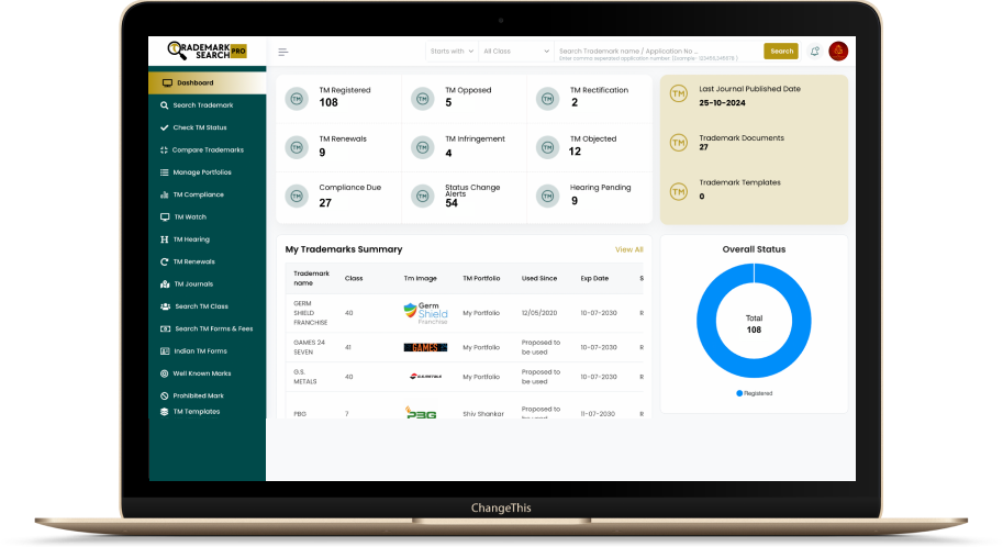 Trademark Search Pro is an All in One Trademark Management Software developed with over 10 years of work experience in Trademark Laws & Practice. With Trademark Search Pro, you can easily add, track, monitor, watch and manage your trademark applications and can send alerts, reminders, reports and documents to your email id or email id of your customers.